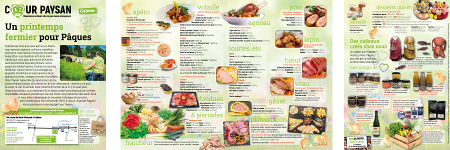 Cela fait des mois qu’un peu partout en Alsace, nous semons, plantons, cultivons, travaillons nos terres, nourrissons et soignons nos animaux. Aujourd’hui, nous récoltons le fruit de notre travail pour vous, pour que cet air printanier, avec les premiers légumes primeurs, arrive jusqu’à vos tables festives.