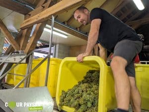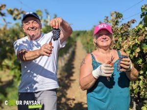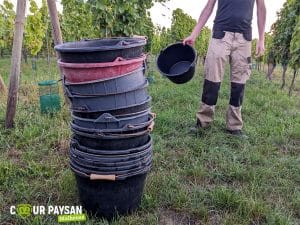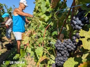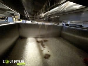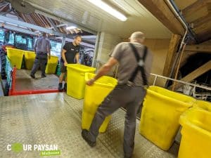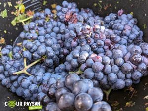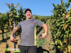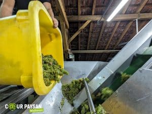 Baptiste, frère de Guillaume, est resté au domaine pour terminer de tout mettre en place, de décharger les raisins et les mettre au pressoir au fur et à mesure.