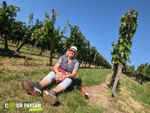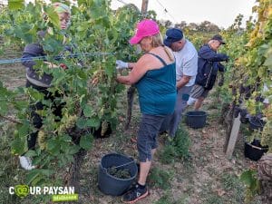 10h30, l’heure du casse-croûte. Denise Klein, épouse de Martin, arrive avec les victuailles. Jeunes et anciens vendangeurs font connaissance dans de grands éclats de rire. De quoi reprendre des forces avant d’y retourner.